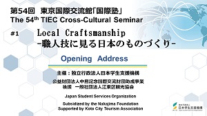 - The 54th TIEC Cross-Cultural Seminar [Local Craftsmanship -職人技に見る日本のものづくり-]