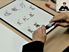 After the lecture, the Special Calligraphy Class was held. It was an opportunity to learn calligraphy directly from the guest speaker, Mr. TAKAGI.