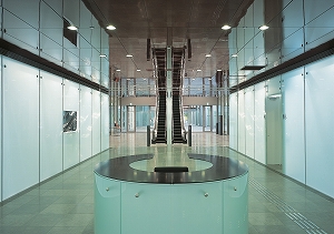 The escalator in front of the entrance takes you directly to International Conference Hall and Media Hall.